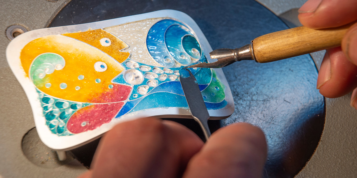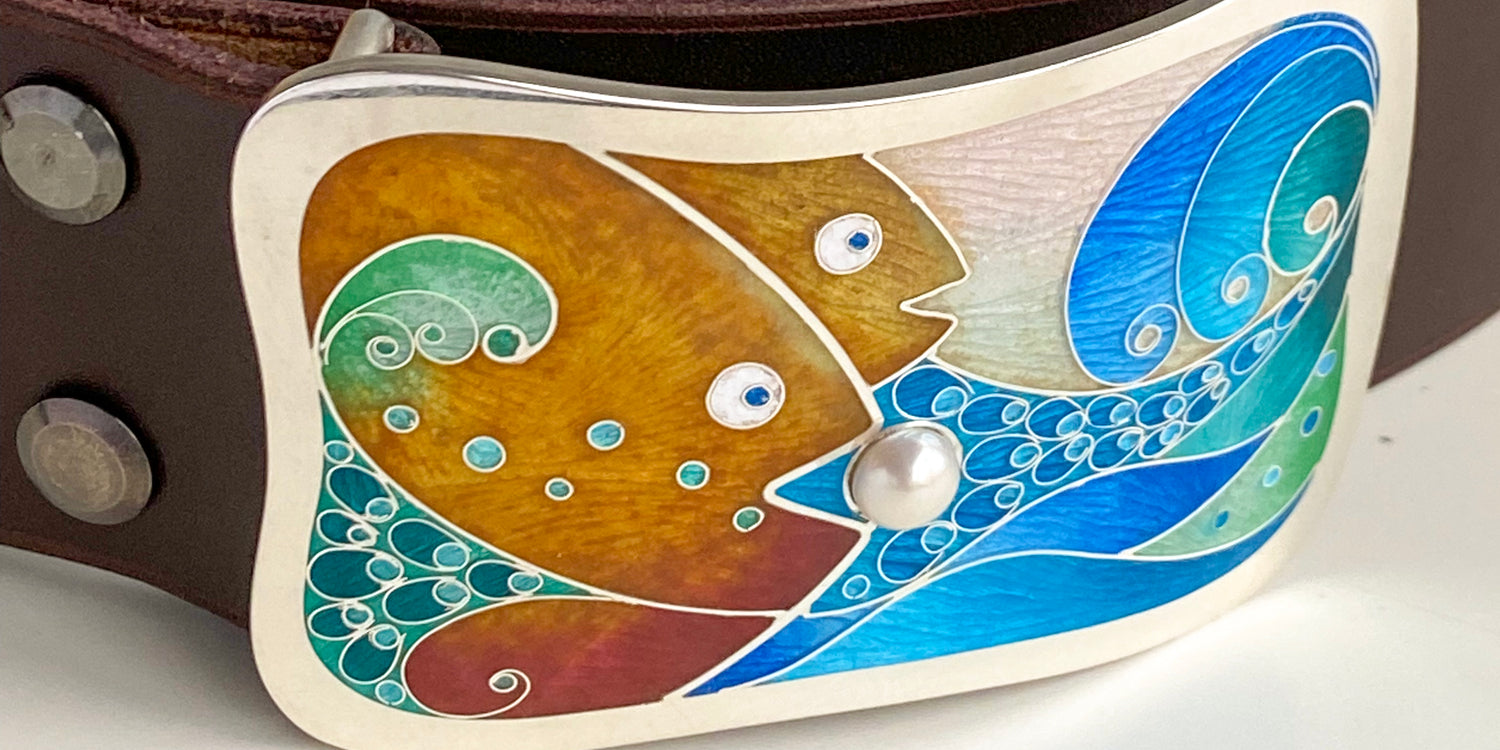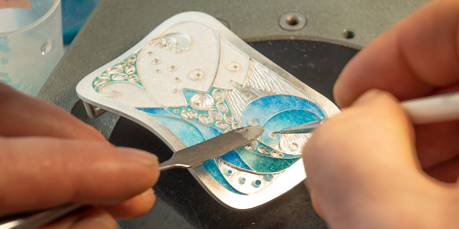 Cloisonné Enamel Pendant Blue Lotus, Sterling Silver Necklace