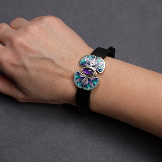 Cloisonne Enamel Leather Bracelet, Sterling Silver Bracelet With Leather Strap