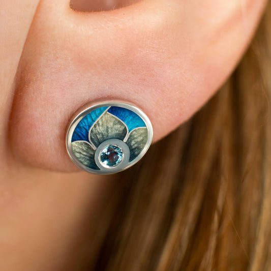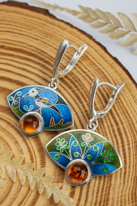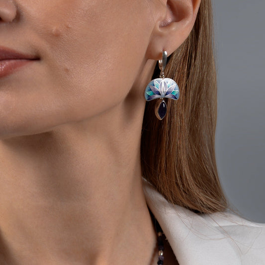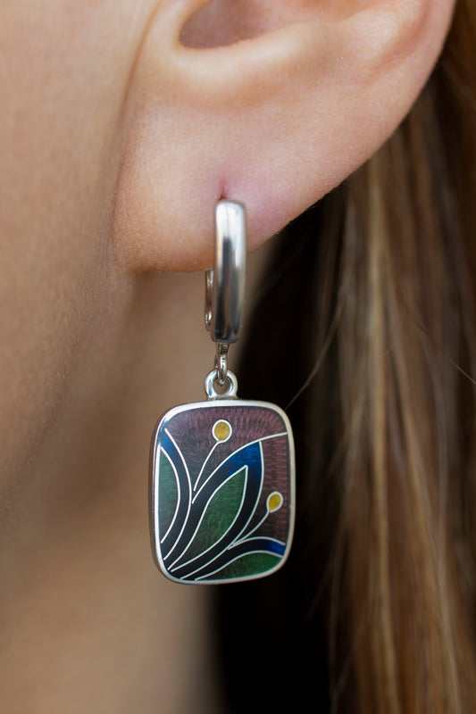 Cloisonné Enamel, Silver, Cute Earrings "Viola"