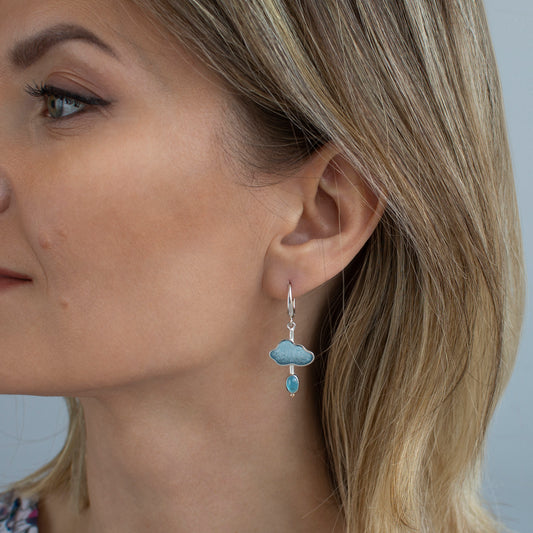 Enamel Earrings Raindrop With Blue Topaz And Gold Beads