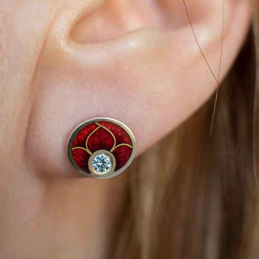 Enamel Earrings, Cloisonne Enamel And Sterling Silver Earrings