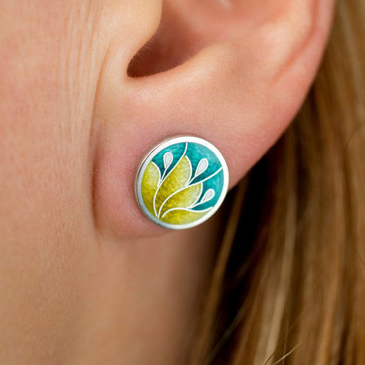 Vintage Earrings, Yellow Blue Cloisonne Enamel Studs