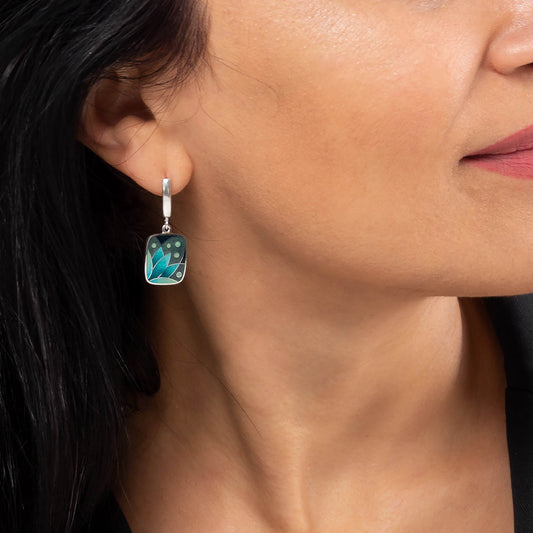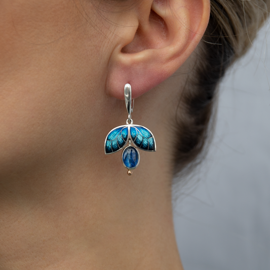 Enamel Earring Morpho Butterfly With Kyanite Stone