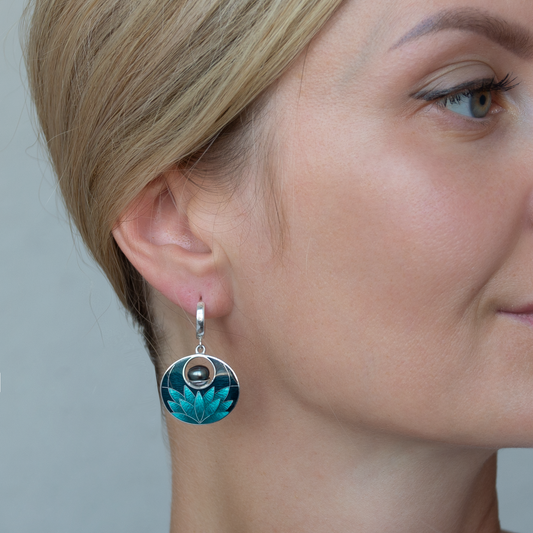Enamel Jewelry Black Turquoise Lily Earrings With Peacock Pearls