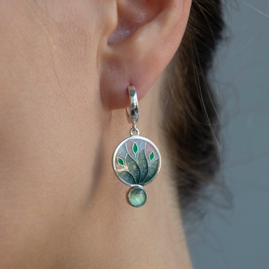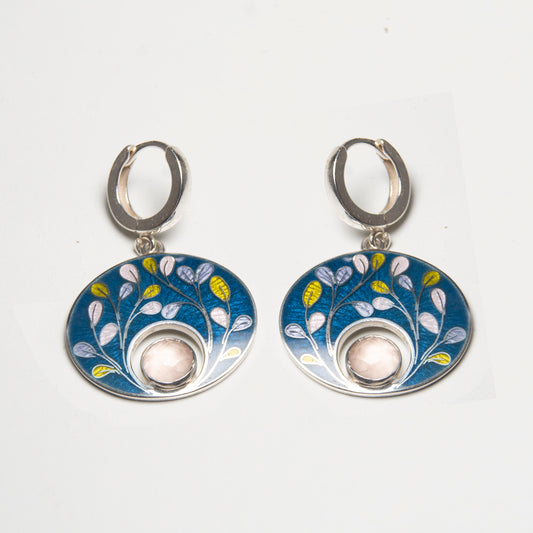 Planty Cloisonne Enamel Earrings With Rose Quartz