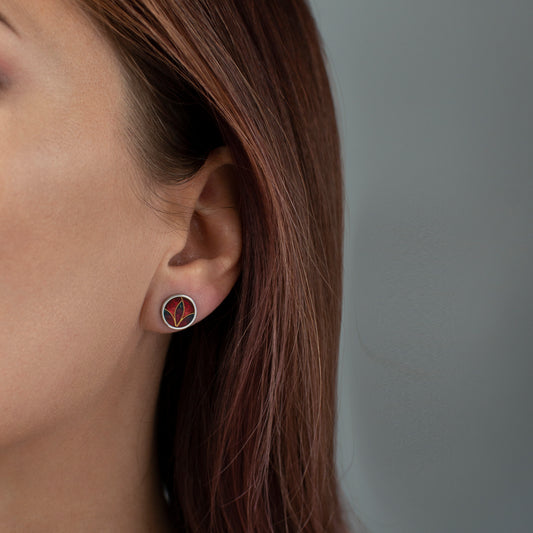 Stud Cloisonne Enamel Earrings Red Or Black Colour