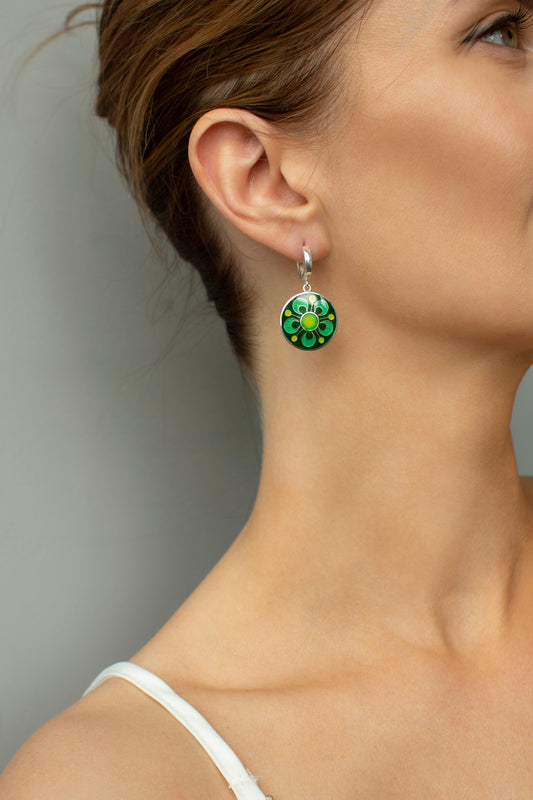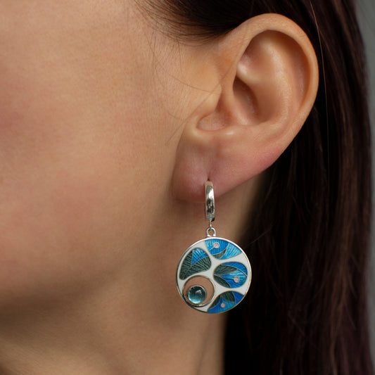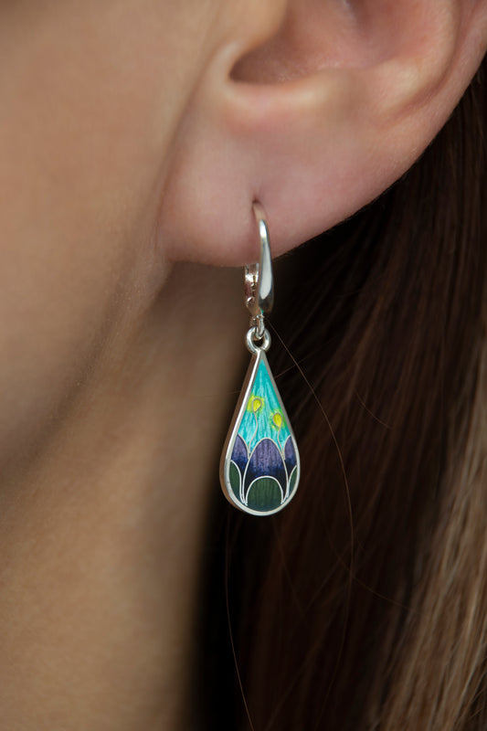 Multicolour Cloisonne Enamel Earrings, Sterling Silver Earrings