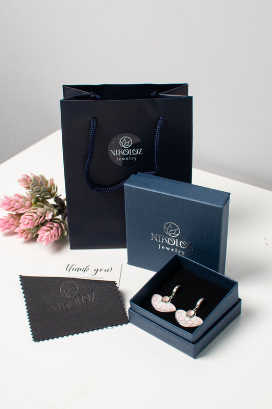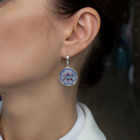 Cloisonné Enamel Earrings Pink Lily, Silver Earrings