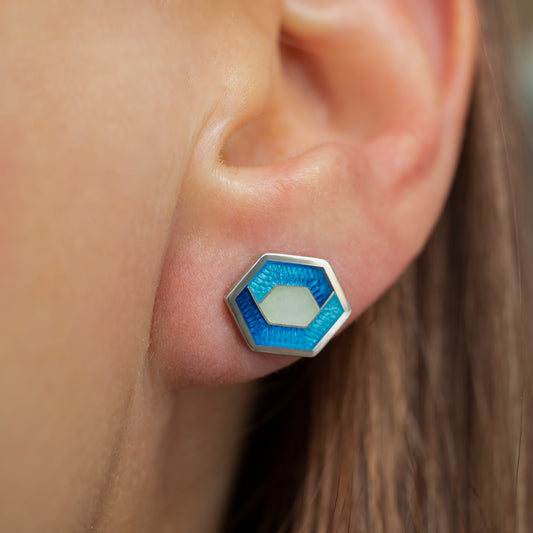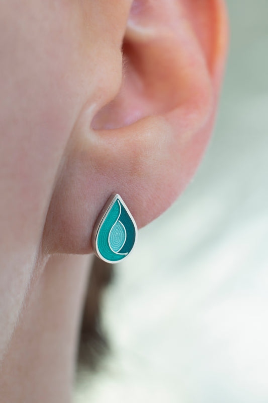 Drop Stud Cloisonne Enamel Earrings With Guilloche Pattern
