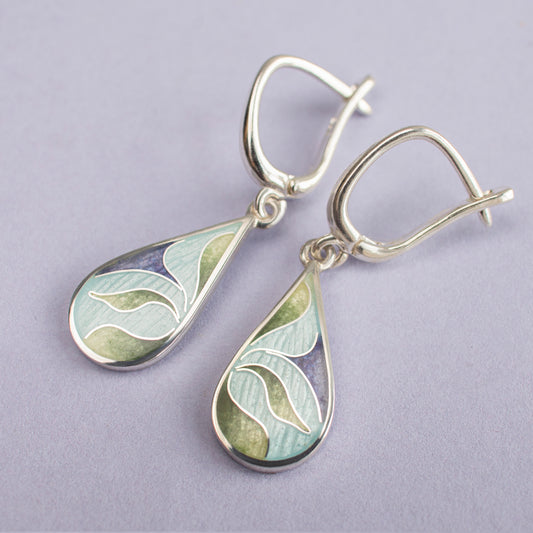 Cloisonne Enamel Teardrop Earrings With Floral Pattern