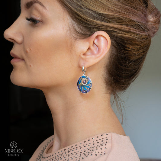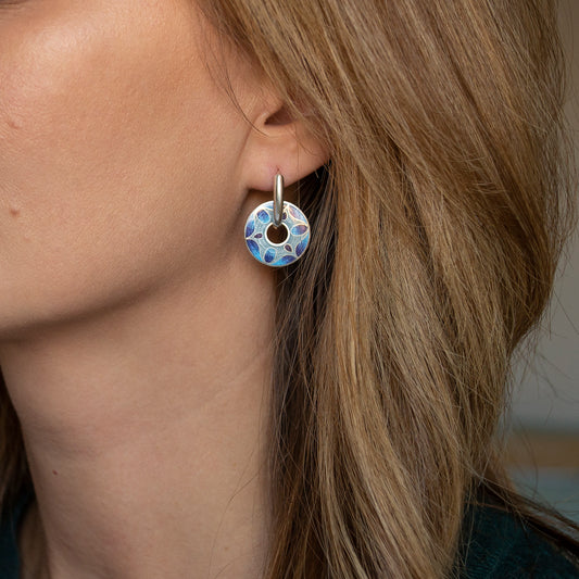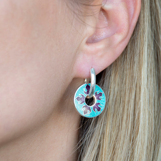 Purple Blue Reversible Cloisonné Enamel Earrings
