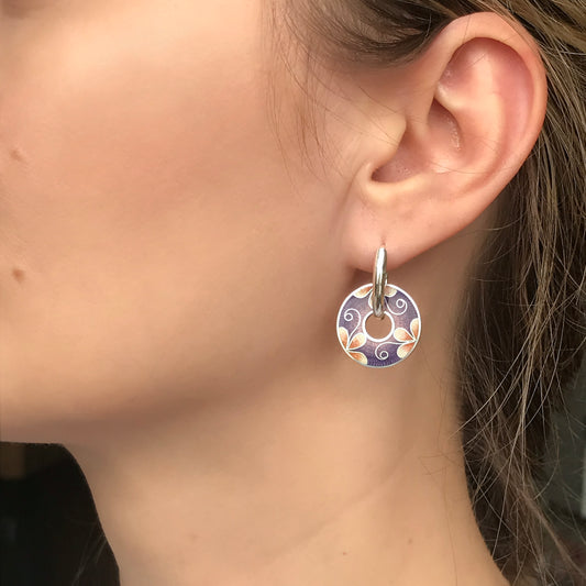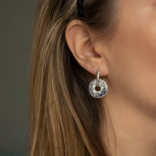 Purple Mandala Cloisonné Enamel Reversible Earrings