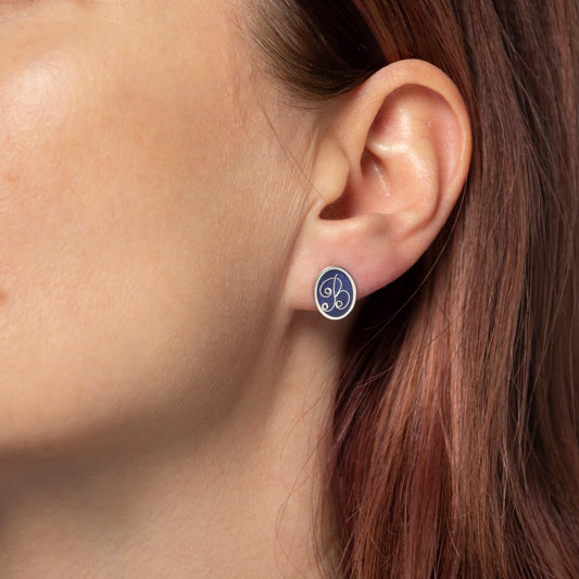 Initial Stud Earrings, Cloisonne Enamel And Sterling Silver Studs With Letters