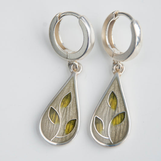 Cloisonne Enamel Earrings Khaki Leaves