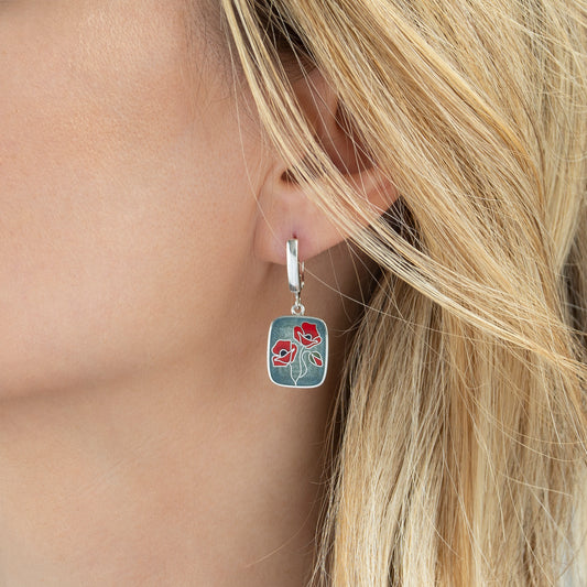 Cloisonné Enameled Earrings "Poppies"