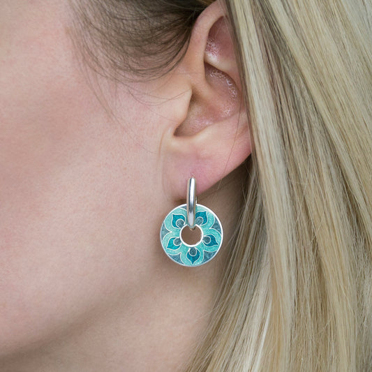 Cloisonné Enamel, Silver, Round Earrings "Turquoise Mandala"