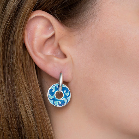 Cloisonne Enamel Earrings Blue Spiral