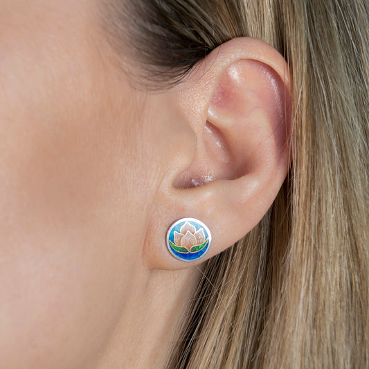 Rose/Blue Lotus Flower Cloisonné Enamel Earrings