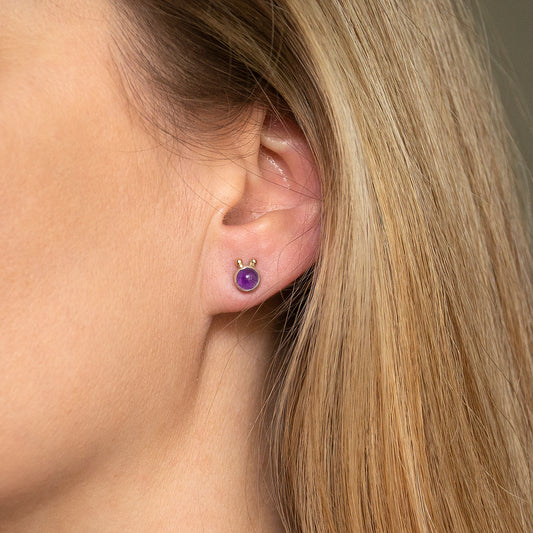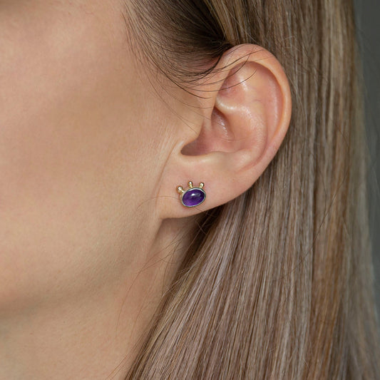 Amethyst Studs With 2 Gold Beads