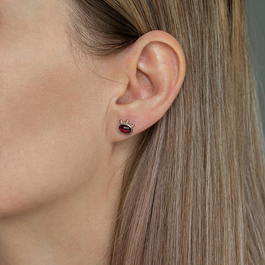 Garnet Studs With 3 Gold Beads