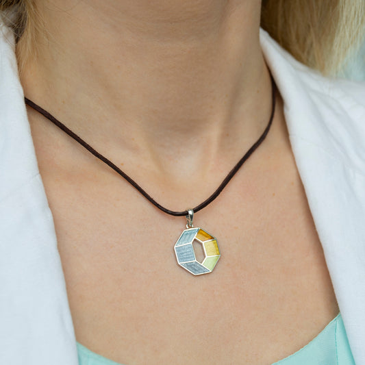 Grey Yellow Octagon Pendant, Cloisonne Enamel Sterling Silver Pendant