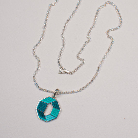 Turquoise Octagon Pendant, Cloisonne Enamel Sterling Silver Geometric Necklace