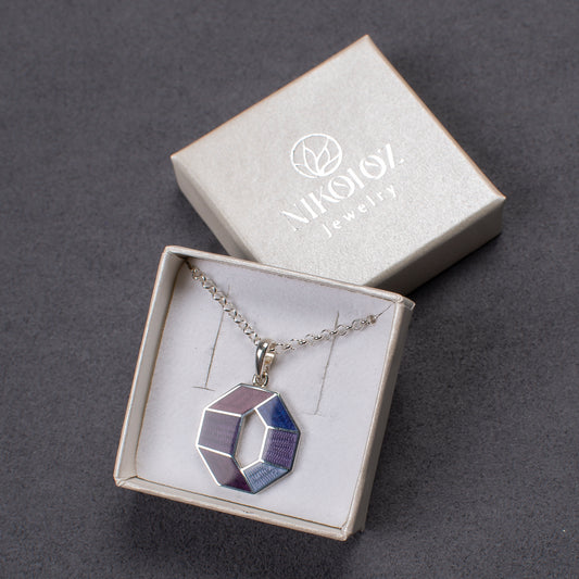 Purple Octagon Pendant, Cloisonne Enamel Sterling Silver Geometric Necklace