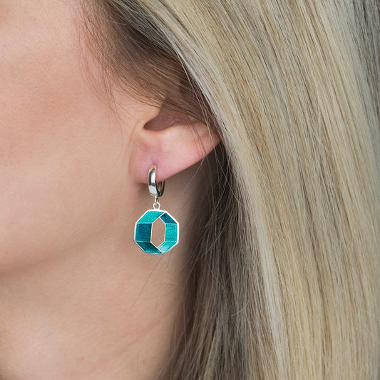 Emerald Turquoise, Octagon, Cloisonné Enamel Earrings
