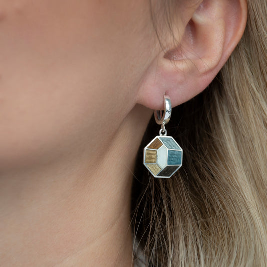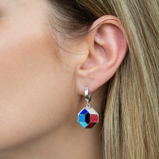 Multicolor Octagon Cloisonné Enamel, Silver Earrings