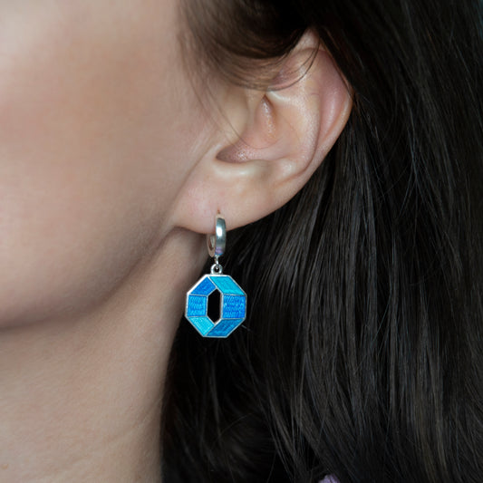 Blue Octagon Cloisonné Enamel Earrings