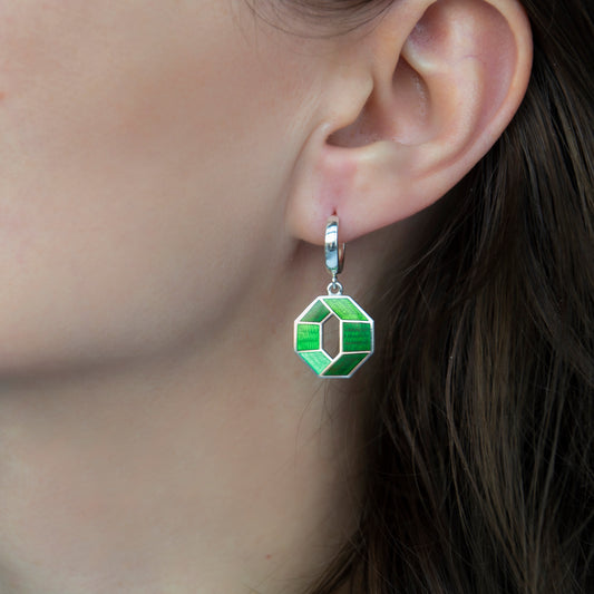 Green Octagon, Cloisonné Enamel Earrings