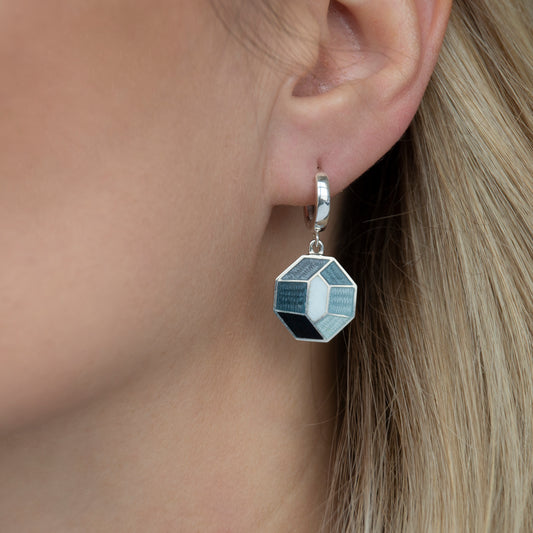 Grey Octagon Cloisonné Enamel and Sterling Silver Earrings