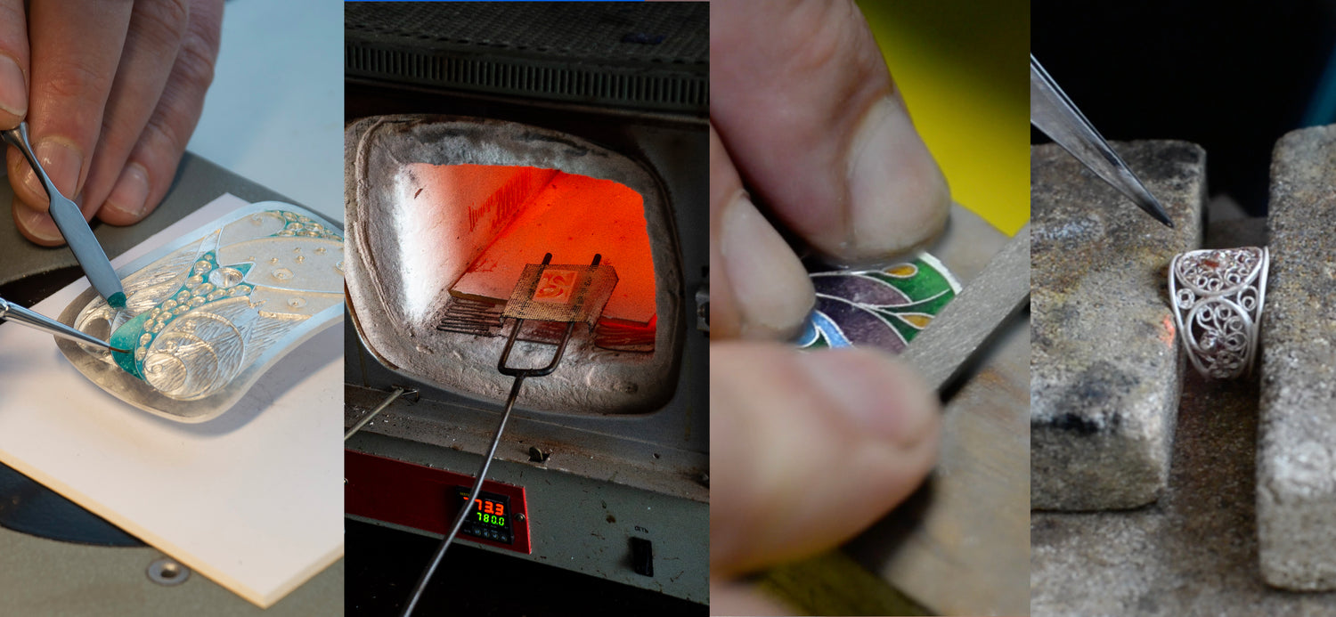One-day master class on cloisonné enamel for a group of 4 people. During the master class, everyone will be able to make an customised pendant for themselves or as a gift. Master class is held in Vilnius, Lithuania, at Nikoloz Jewelry studio.