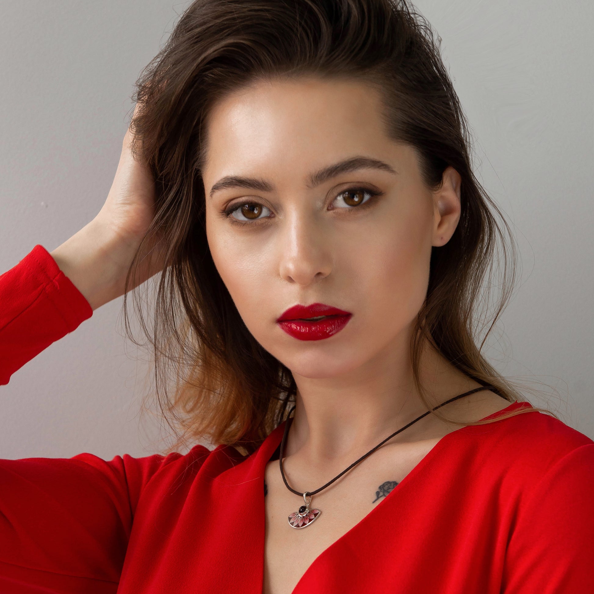 Pendant inlaid with 6mm Garnet cabochon, which has round form and deep transparent surface. Pendant base is engraved which shows deep and transparency of enamel. You can choose additionally 45 cm (17,7inch) or 50 cm (20inch) silver cable neck chain with lobster claw closure. Pendant covered with hot transparent enamel. Enameling is an art of decoration metal surfaces to create colorful and amazing designs. It's a very old and laborious technique.