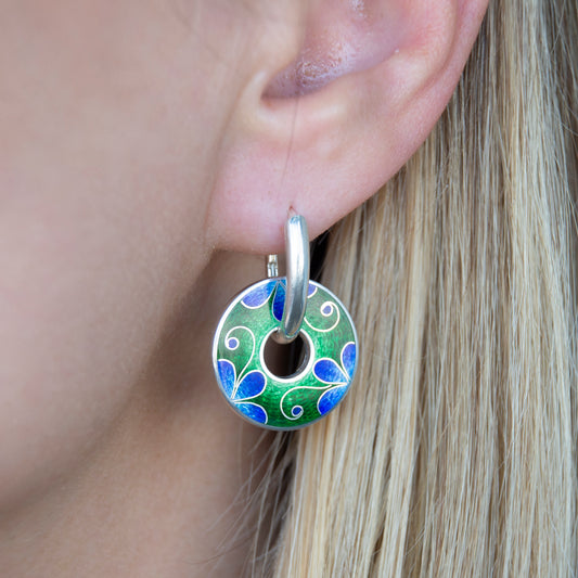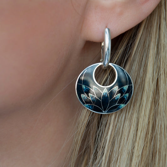 Blue Flower Reversible Earrings. Silver, Cloisonné Enamel Technique.
