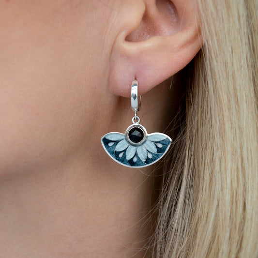 Black Onyx Semicircle Cloisonné Enamel Earrings