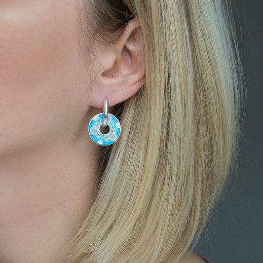 Blue Cloudy Cloisonne Enamel Rotating Earrings