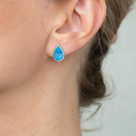 Small Drop Stud Enamel Earrings With Guilloche Pattern