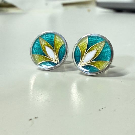 Yellow Blue cloisonne enamel studs. Custom earrings
