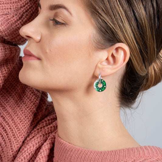 Green Grass Rotating, Cloisonné Enamel Double Sided Earrings 🍃